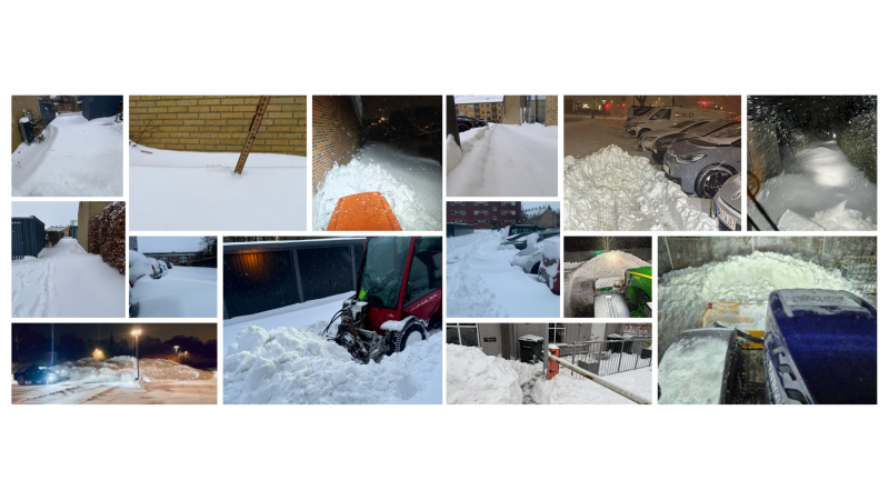 Vi kan allerede nu se, at snebunkerne mange steder vil blive liggende. Vejrudsigten peger på en længere periode med frost, og derfor er det ikke realistisk, at al sne kan fjernes hurtigt.
