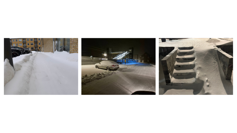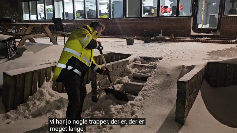 I den video, der er delt, ses et fortov, som Christoffer ryddede i går aftes kl. 20.00. Som det tydeligt fremgår nu, er området allerede fuldstændigt sneet til igen. Det er et meget præcist billede på situationens alvor og den hastighed, sneen falder med. Se den her: https://youtu.be/WEY582QYCGc